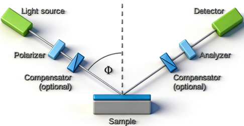 椭圆偏振薄膜厚度测量方案,精度更高,可测量亚纳米到15微米厚度范围的单层或多层厚度及折射率、消光系数。